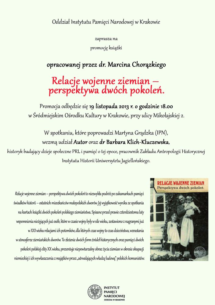 Promocja książki „Relacje wojenne ziemian – perspektywa dwóch pokoleń”