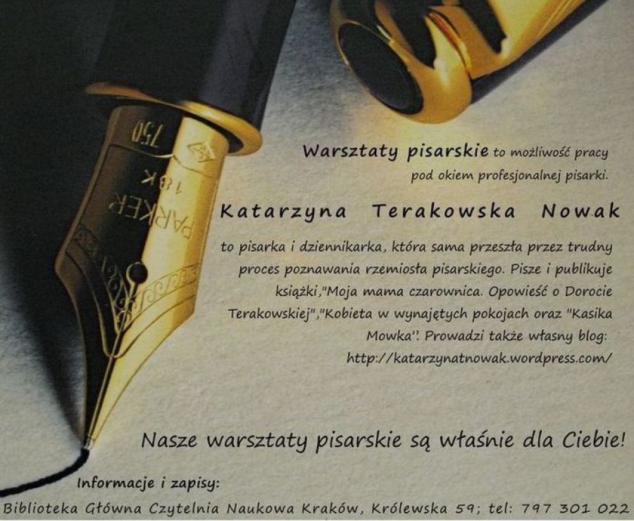 Warsztaty pisarskie - prowadzenie Katarzyna Terakowska Nowak