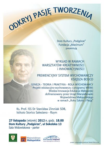 WYKŁAD OTWARTY "PREWENCYJNY SYSTEM WYCHOWAWCZY KSIĘDZA BOSCO" W RAMACH WARSZTATÓW KREATYWNOŚCI I INNOWACYJNOŚCI "ODKRYJ PASJĘ TWORZENIA"