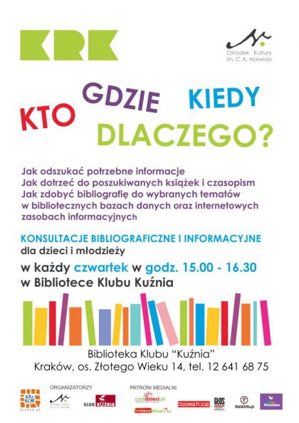 Biblioteka Klubu Kunia Orodka Kultury im. C. K. Norwida, os. Zotego Wieku 14, Krakw.