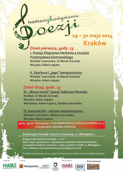 "Namuz(yk)owywanie poezji" czy spotkania warsztatowe z muzyk "na ywo". Projekt realizowany przy wsparciu finansowym Wojewdztwa Maopolskiego.
