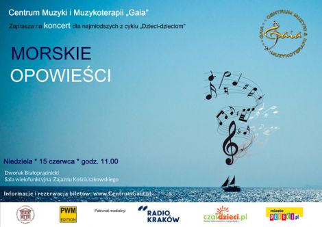 15 czerwca o godz. 11.00 Centrum Muzyki i Muzykoterapii Gaia zaprasza na kolejny koncert z cyklu Dzieci-dzieciom, zatytuowany Morskie opowieci. Opowiemy muzyczne historie z dalekich krajw, zataczymy na pokadzie i pokoyszemy si przy prawdziwych szantach. Zachcamy duych i maych goci do przebrania si w marynarskie stroje, niech ju nas woaj wakacje, ahoj!