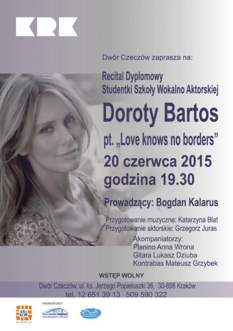 Recital dyplomowy studentki Szkoy Wokalno Aktorskiej, Doroty Bartos. Tytu recitalu Love knows no borders.