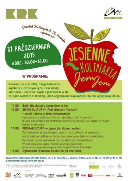 Orodek Kultury im C. K. Norwida zaprasza na Jesienne kulinaria Jem Jem, ktre odbd si w niedziel 11 padziernika 2015 roku w godzinach od 10.00 do 16.00 na os. Grali 5 w Krakowie.