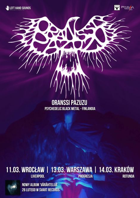 | Fiski, Oranssi Pazuzu, jeden z najbardziej innowacyjnych zespow wspczesnego black metalu wystpi w krakowskiej Rotundzie 14 marca. Jeli przyj, e black metal od kilku lat ponownie rozkwita i zaskakuje swymi kolejnymi mutacjami, to Oranssi Pazuzu s bez wtpienia jednymi ze sprawcw tego stanu rzeczy. Istniejca od niespena dekady formacja z Tampere i Seinjoki, wraz z kadym kolejnym albumem poszerza granice gatunku o kolejne wymiary, b(...) ... więcej » |