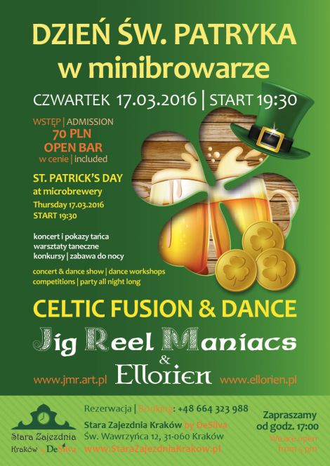 Ju po raz 4. w dniu 17 marca Stara Zajezdnia Krakw by DeSilva organizuje najbardziej irlandzk imprez w Krakowie - Dzie w. Patryka.