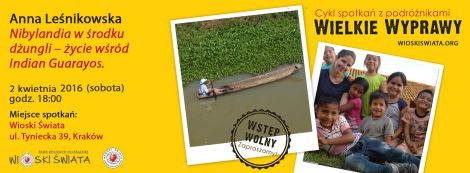 Chcc rozmawia o rnorodnoci etnicznej nie powinnimy pomin kraju, ktry jest idealnym jej przykadem: Boliwii. Kolejne spotkanie Wielkich Wypraw pod hasem Ameryki Poudniowej i Boliwii poprowadzi Anna Lenikowska studentka fizjoterapii na krakowskim AWF-ie, dziaaczka Salezjaskiego Wolontariatu MODZI WIATU. Opowie o swoich dowiadczeniach jakie zdobya podczas intensywnego czasu spdzonego na misjach w Mongolii i Boliwii.