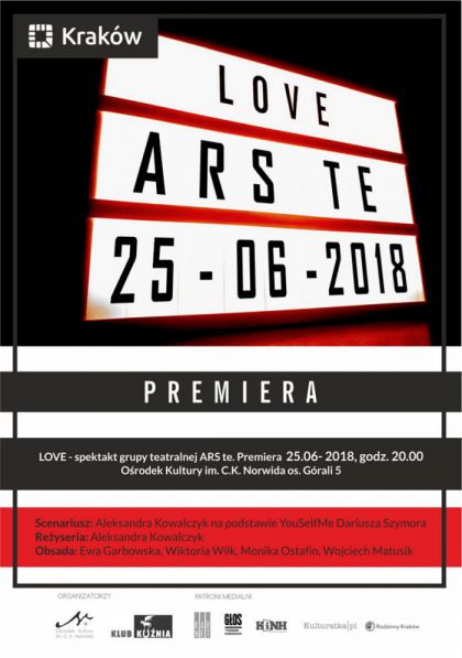 Spektakl LOVE zosta stworzony na podstawie autorskiego tekstu Dariusza Szymora YouSelfMe. Opowiadamy o mioci. O jej braku. O wspczesnoci. Czerpiemy z motyww baniowych. Wstp wolny.