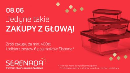 Coraz cieplejsze dni zachcaj do spdzania czasu na onie natury. Wycieczki rowerowe, grskie wdrwki czy miejskie pikniki kada z tych aktywnoci moe by jeszcze przyjemniejsza, gdy zabierzemy ze sob ulubione, domowe jedzenie. Zadanie uatwi zestaw pojemnikw lunchowych, ktry ju w najblisz sobot bdzie dostpny dla klientw Serenady po okazaniu paragonw za zakupy. Nie czekaj i skorzystaj z promocji!