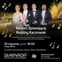 Ju w sobot 25 stycznia Centrum Serenada wszystkich odwiedzajcych je tego dnia goci zaprosi na wyjtkowy wystp. piewajca Rodzina Kaczmarek to artyci obdarzeni niezwykymi gosami wystpujcy dla publicznoci z caej Polski, znani m.in. z telewizyjnego show Mam Talent. Gwiazdy wieczoru wykonaj najpikniejsze arie z oper i operetek, piosenki z musicali, a take przeboje polskiej i wiatowej muzyki estradowej.