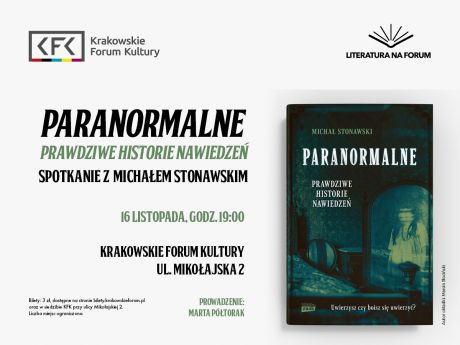 Krakowskie Forum Kultury zaprasza na spotkanie z Michaem Stonawskim, autorem ksiki Paranormalne. Prawdziwe historie nawiedze (ZNAK 2021). Tematem rozmowy bd zjawiska paranormalne, nawiedzone miejsca, opowieci wiadkw, opinie egzorcystw oraz inne tematy mroce krew w yach. Prowadzenie: Marta Ptorak