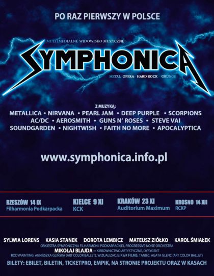 Multimedialne Widowisko Muzyczne SYMPHONICA to wyjtkowa w swoim rodzaju prba zblienia pozornie odlegych muzycznie planet. W wiecie tym potga brzmienia elektrycznych gitar wspgra z subtelnym i penym klasy piewem operowym, a wszystko wypenia brzmienie orkiestry symfonicznej. Dwik, ruch, obraz i wiato tworz metafizyczny spektakl, a w tej niezwykej oprawie usysze mona ponadczasowe rockowe i metalowe ballady takich grup jak Metallica, Scorpions, Aerosmith, Nightwish, Apocalyptica, instrumentalne dziea gigantw gitary (Steve Vai) oraz pene niepokoju kompozycje nurtu grunge (Nirvana, Pearl Jam, Soundgarden).