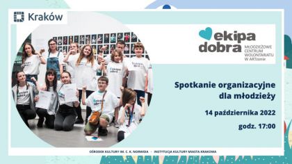 SPOTKANIE ORGANIZACYJNE dla wolontariuszy zainteresowanych wolontariatem w projekcie Ekipa Dobra odbędzie się: