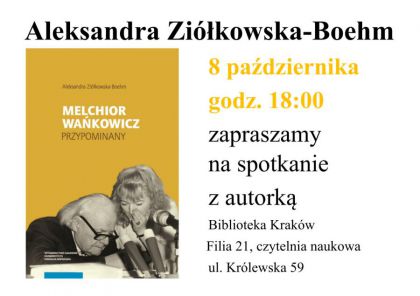 Jednym z patronów bieżącego roku jest Melchior Wańkowicz. Z tej okazji zorganizowane zostanie spotkanie z Aleksandrą Ziółkowską-Boehm na temat książki „Melchior Wańkowicz – przypominany”.