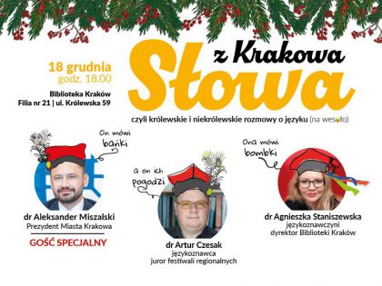 Rozmawiać będą tradycyjnie: dr Agnieszka Staniszewska-Mól, językoznawczyni, dyrektorka Biblioteki Kraków, i dr Artur Czesak, dialektolog, znany z „Wyczesanych rozmów” w Radio Kraków. Gościem specjalnym spotkania będzie dr Aleksander Miszalski – Prezydent Miasta Krakowa.