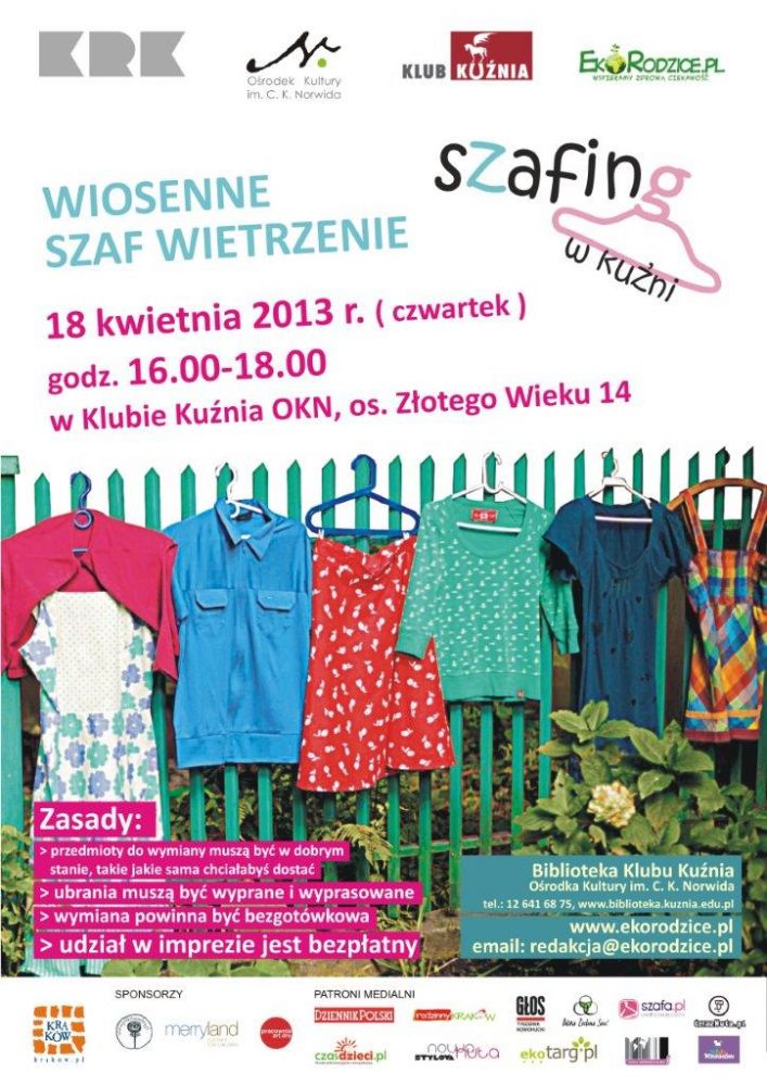 Biblioteka i Klub Kunia Orodka Kultury im. C. K. Norwida oraz portal Ekorodzice.pl zapraszajš na SZAFING pod hasłem: Wiosenne szaf wietrzenie.