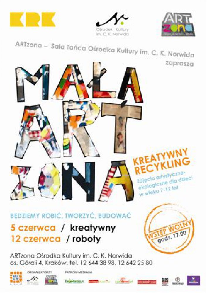 Mała ARTzona to artystyczno-ekologiczne zajęcia dla dzieci, wykorzystujšce kreatywne zabawy, upcykling, czyli wykorzystanie zużytych materiałów. Będziemy tworzyć zabawki, biżuterię i inne przedmioty. Pokażemy dzieciom jak przy odrobinie chęci można połšczyć oszczędnoœć, pożytecznoœć i œwietnš zabawę!