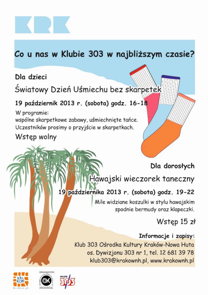 Impreza dla dzieci, w programie której przewidziano między innymi wspólne skarpetkowe zabawy oraz uœmiechnięte tańce. Zadaniem każdego uczestnika jest przyjœcie w skarpetkach, które póŸniej będš mogły zostać wykorzystane do zabaw. Należy przynieœć także zapasowš parę skarpet, w której dzieci będš mogły wrócić do domu.