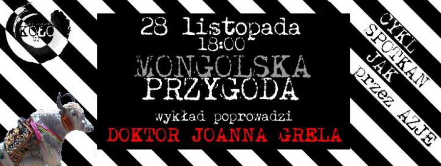 Już 28.11 zapraszamy na pierwsze spotkanie z cyklu "JAK przez AZJE" organizowane przez Koło Naukowe OKoło! Naszym gociem będzie Joanna Grela, która podzieli się z nami swoimi dowiadczeniami z wypraw do Mongolii - zarówno z punktu widzenia osoby studiujšcej, jak i podróżujšcej po kraju buddyzmu tybetańskiego. W trakcie krótkiego wykładu (nie mylić z tym na uczelni) postara się nie tylko przybliżyć nam efekty swojej pracy naukowej. Opowie także jak poznawała Mongolię, by pomóc nam w osišgnięciu celu cyklu - zdobywania wiedzy potrzebnej w wyprawie do Azji. W końcu kto z nas nie marzy o podróży na drugi koniec wiata? A po wykładzie czas na pytania i dyskusję! Przygotujcie więc wszystkie nurtujšce Was od lat pytania zwišzane z Mongoliš. Czy w Ułan Bator parkuje się konie? Czy Mongołowie majš zasięg? Czy lama to więcej niż jedno zwierzę? Oto unikalna okazja bycie rozwiali swoje wštpliwoci.