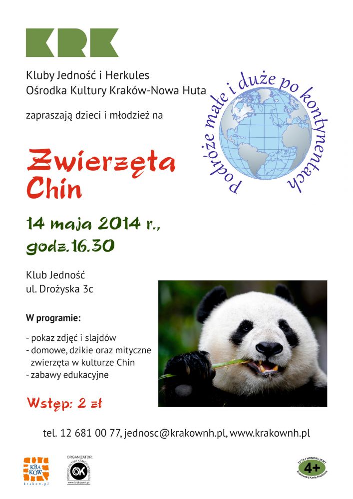 Tym razem najmłodsi zostanš zabrani w wirtualnš wyprawę do Chin. Przedstawione zostanš podstawowe informacje o jednej z najstarszych cywilizacji, jej kulturze i terenie, który zamieszkuje. Nie zabraknie ciekawostek o Państwie rodka oraz pokazu zdjęć. Następnie prowadzšcy przybliży zagadnienie chińskich zwierzšt - tych domowych, jak i tych dzikich oraz mitycznych. Spotkaniu towarzyszyć będš zabawy edukacyjne i plastyczne. Zapraszajš Kluby Jednoć i Herkules.