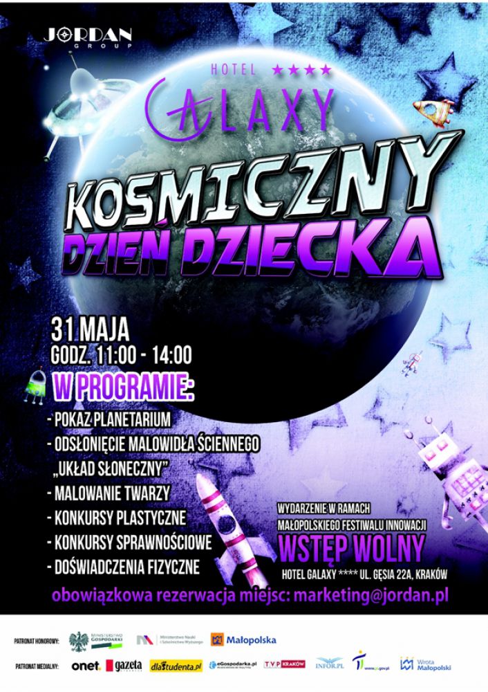 Hotel Galaxy w Krakowie zaprasza wszystkie dzieci na Kosmiczny Dzień Dziecka! Impreza odbędzie się 31 maja o godzinie 11:00. Wstęp wolny!