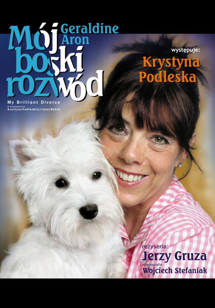 Krystyna Podleska, która urodziła się w Londynie i tam zdobywała aktorskie szlify, rzadko dzi pojawia się na scenie. Ponoć głównie zajmuje się tłumaczeniami. Monodram "Mój boski rozwód" przeniesiony z Teatru Ludowego jest więc wyjštkiem i dlatego warto go dostrzec. Sprawna reżyseria mistrza Jerzego Gruzy, humor i rzeczywicie dobre aktorstwo Podleskiej stanowiš gwarancję miłego wieczoru. A zamiast misia aktorka na scenie ma wypchanego pieska.