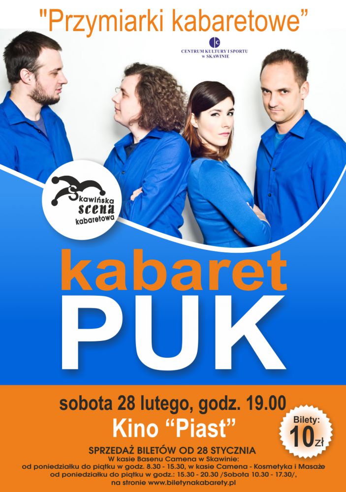 Kabaret PUK powstał w 2008 roku w Krakowie. W szybkim tempie skradł serca widzów zarówno w Krakowie jak i w całej Polsce. W cišgu kilku lat działalnoœci, PUK zdołał zawojować najważniejsze festiwale kabaretowe w kraju: PAKA, Ryjek, Lidzbarskie Wieczory Humory i Satyry, a także brał udział w prestiżowych realizacjach telewizyjnych - Zielonogórska Noc Kabaretowa, Rybnicka Jesień Kabaretowa czy Kabaretowa Noc Listopadowa.