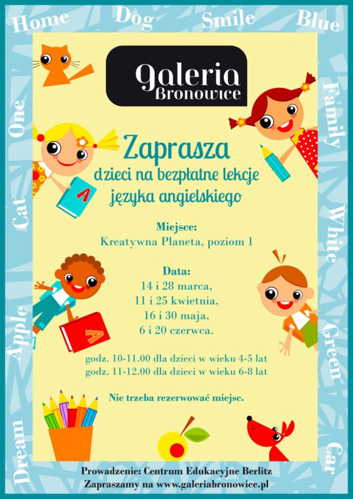 Już w najbliższš sobotę, 14 marca, w Galerii Bronowice odbędš się pierwsze w tym roku lekcje języka angielskiego dla dzieci. W bezpłatnych zajęciach maluchy uczestniczyć będš mogły przez 4 miesišce.