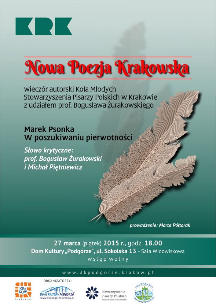 Zapraszamy na spotkanie z cyklu Nowa Poezja Krakowska, które ma na celu przedstawić poetów i przybliżyć ich twórczoœć skupionych przy Kole Młodych krakowskiego Stowarzyszenia Pisarzy Polskich w Krakowie.