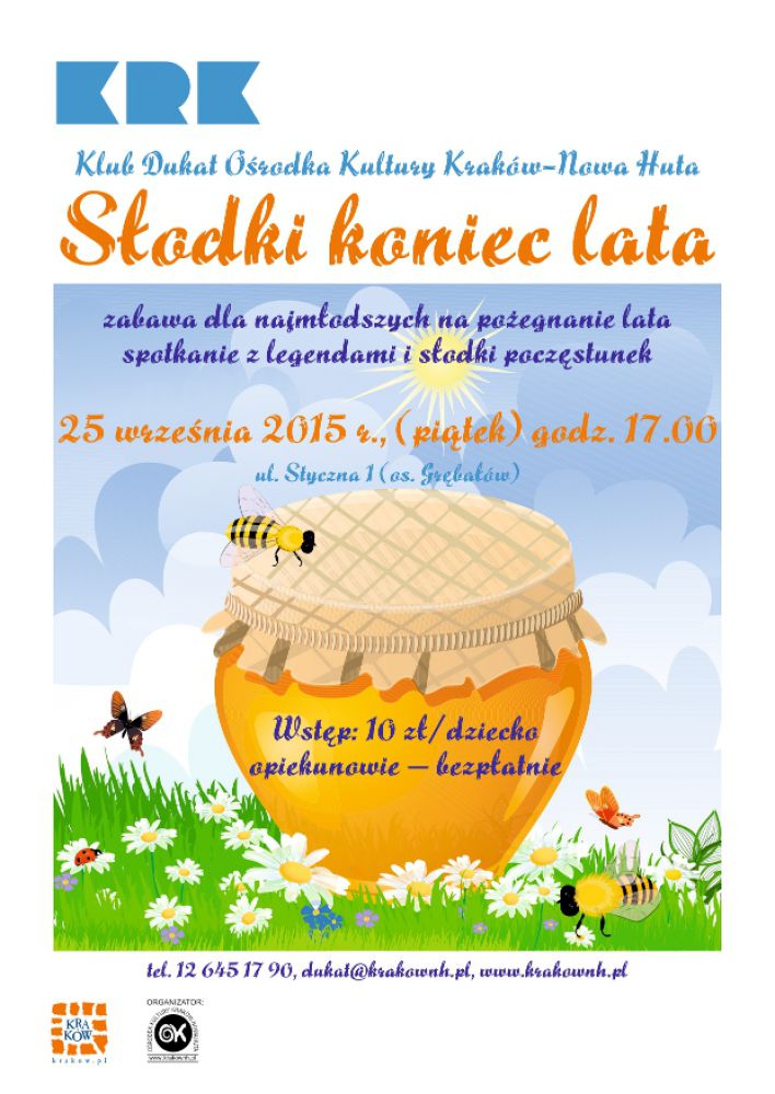 Klub Dukat Orodka Kultury Kraków-Nowa Huta (os. Grębałów, ul. Styczna 1) zaprasza 25.09. na godz. 17.00 na zabawę dla dzieci od 2 r. ż. z rodzicami lub opiekunami. W programie znajdzie się m.in. animowana inscenizacja legend polskich z udziałem dzieci. Zabawa - realizowana w roku Jana Długosza - ma na celu przybliżenie dzieciom historycznych i legendarnych postaci polskich. Zabawa prowadzona będzie przez animatora, a towarzyszyć jej będzie - jak zawsze - słodki poczęstunek.
