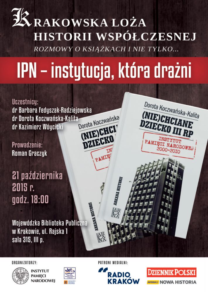 „IPN – instytucja, która drażni” spotkanie z cyklu „Krakowska Loża Historii Współczesnej” – Kraków, 21 paŸdziernika 2015 r.