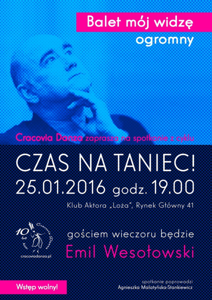 Choreograf, pedagog, tancerz i reżyser, jeden z najważniejszych twórców na polskiej scenie baletowej XX i XXI wieku, Emil Wesołowski będzie gociem najbliższego spotkania z cyklu CZAS NA TANIEC!, które odbędzie się 25 stycznia, tradycyjnie o godz. 19 w Klubie Aktora Loża.