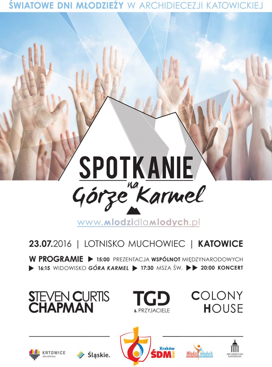 23 lipca 2016 roku na katowickim lotnisku Muchowiec odbędzie się Spotkanie na Górze Karmel dedykowanych Œwiatowym Dniom Młodzieży Kraków 2016.