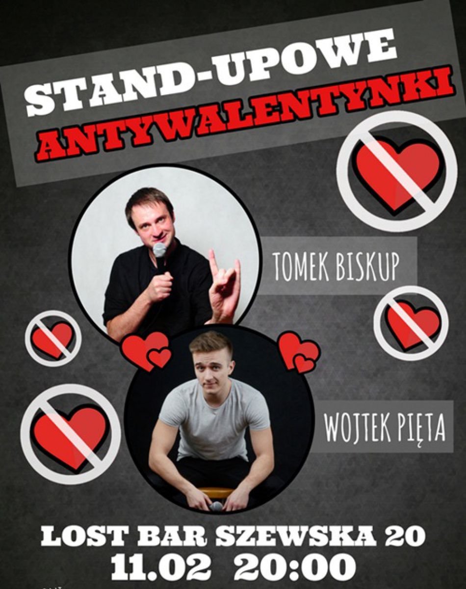 Walentynki...œwięto miłoœci, zakochanych i wszechobecnych serduszek, kwiatków, misiów, kartek, kolacji przy œwiecach i innych miłoœciowych prezentów. Zastanawiałeœ/aœ się kiedyœ nas sensownoœciš tego œwięta? Nie czujesz przesytu? Bo my tak! Dlatego przygotowaliœmy coœ specjalnego! Zapraszamy na ANTYWALENTYNKI! I to nie byle jakie, stand-upowe!