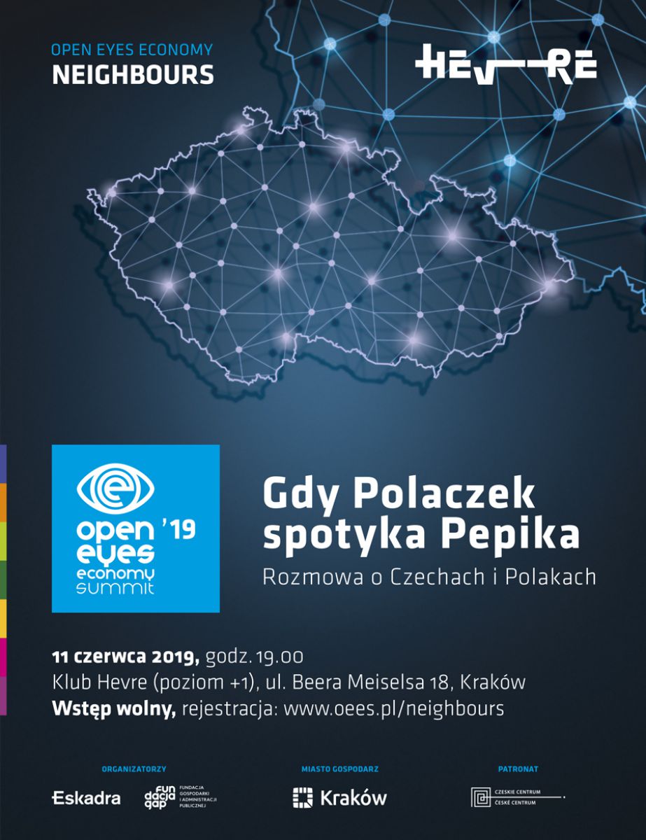 Już 11 czerwca w krakowskim Hevre na ulicy Beera Meiselsa 18 odbędzie się spotkanie inaugurujšce cykl Neighbours pod patronatem Open Eyes Economy. W starym żydowskim domu modlitewnym na Kazimierzu spotkajš się osobowoci zwišzane z kulturami czeskš i polskš, aby porozmawiać o tym, co łšczy, a co dzieli dwa sšsiadujšce ze sobš narody oraz z czego wynikajš te różnice.