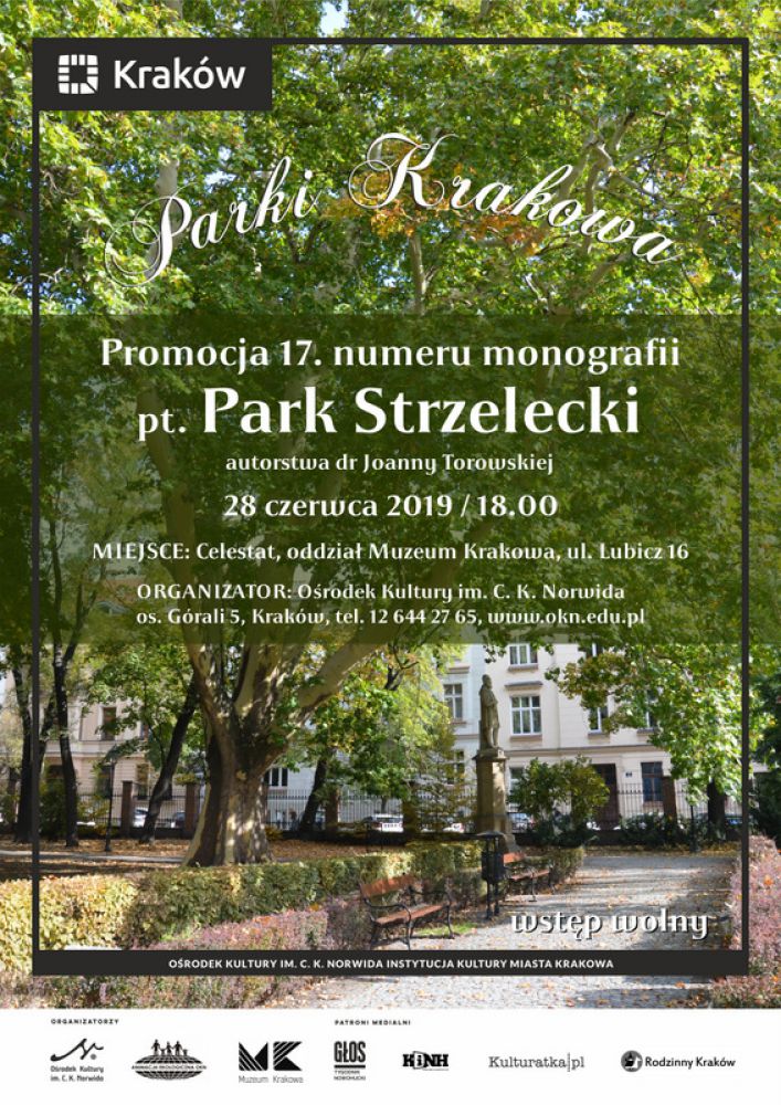 Pracownia Animacji Ekologicznej Oœrodka Kultury im. C. K. Norwida w Krakowie wraz z partnerami serdecznie zapraszajš na spotkanie promocyjne 17. numeru monografii z serii „Parki Krakowa” autorstwa dr Joanny Torowskiej, który został poœwięcony Parkowi Strzeleckiemu. Wstęp wolny.