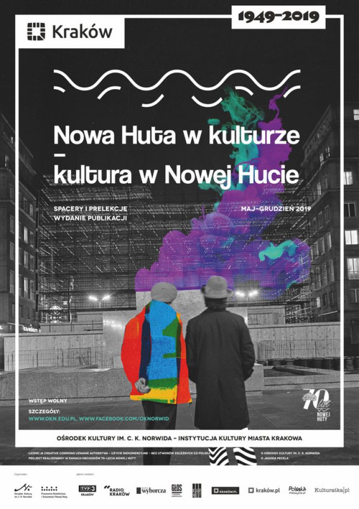 Nowa Huta w kulturze – kultura w Nowej Hucie - cykl spacerów i prelekcji, podczas których będziemy opowiadać o dziedzinach kultury i sztuki w kontekœcie Nowej Huty z perspektywy ich œrodowisk i tekstów kultury. Na warsztat weŸmiemy: teatr; literaturę; film; fotografię; muzykę; sztuki plastyczne: malarstwo, rzeŸbę, rysunek, grafikę; architekturę. Dzięki temu dowiemy się kto, co i jak tworzył w Nowej Hucie. Podsumowaniem realizowanych działań będzie bezpłatna recenzowana publikacja zbierajšca poruszane tematy. Projekt realizowany przez Pracownię Dziedzictwa i Tożsamoœci Nowej Huty OKN w ramach obchodów 70-lecia Nowej Huty.