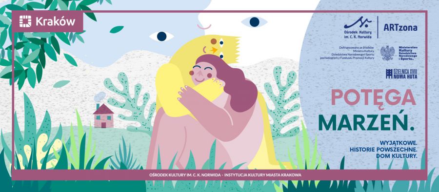 POTĘGA MARZEŃ to seria warsztatów dedykowana działaniom z zakresu edukacji kulturalnej w obszarach animacji filmowej, fotografii, muzyki, teatru i filmu, o walorach arteterapeutycznych adresowana do wszystkich grup wiekowych, realizowana w ARTzonie Ośrodka Kultury im. C. K. Norwida w ramach projektu WYJĄTKOWE HISTORIE POWSZECHNE. DOM KULTURY. Dofinansowano ze środków Ministra Kultury i Dziedzictwa Narodowego pochodzących z Funduszu Promocji Kultury, Miasta Kraków oraz Rady Dzielnicy XVIII Nowa Huta.