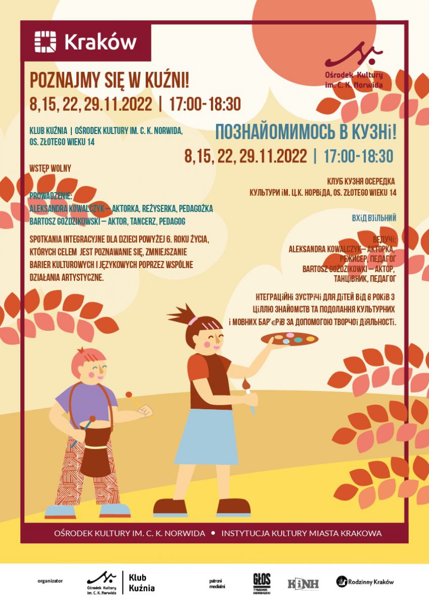 Spotkania, skierowane dla dzieci powyżej 6. roku życia, których celem jest poznawanie się, integracja, zmniejszanie barier kulturowych i językowych poprzez wspólne działania artystyczne.