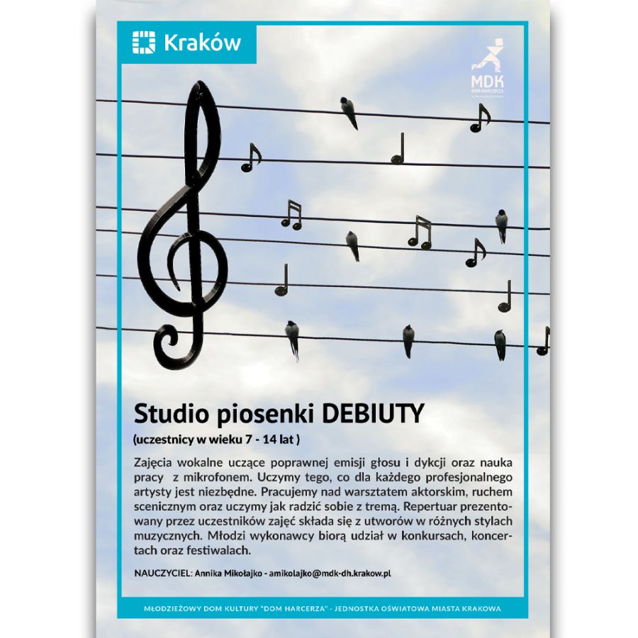 Młodzieżowy Dom Kultury "Dom Harcerza" zaprasza do Studia Piosenki Debiuty!
