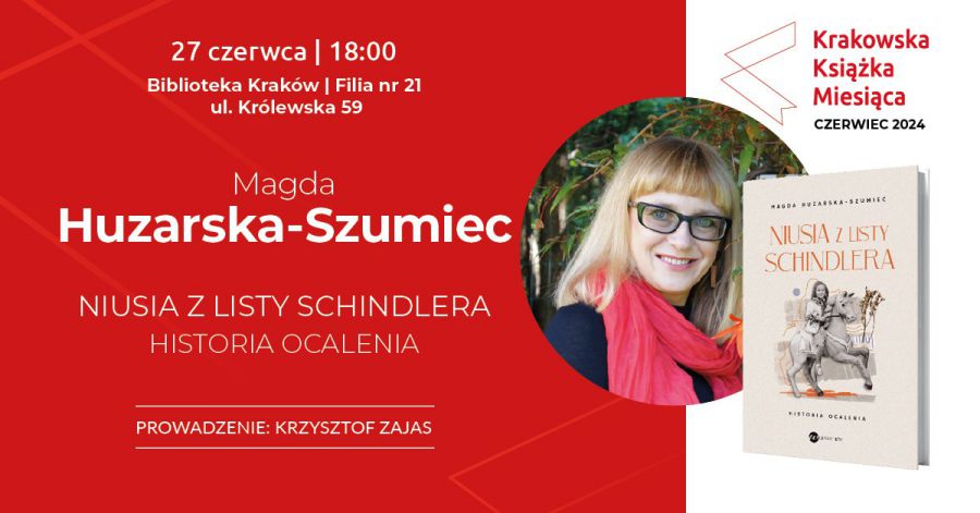 Zapraszamy na spotkanie z laureatką Krakowskiej Książki Miesiąca maja - Magdą Huzarską-Szumiec.