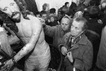 ) Uwagę mojš zwróciły natomiast od razu oblicza uczestników czy też obserwatorów tego spektaklu. Zniszczone ciężkš pracš fizjonomie pštników, pogršżone w autentycznym religijnym uniesieniu, przeżywaniu nowotestamentowej relacji na temat mierci boskiego syna lub w żalu po mierci jego matki. Wyłapywałem z tłumu poszczególne twarze za pomocš teleobiektywu, po czym doć szybko zdałem sobie sprawę, że należy podejć bliżej.