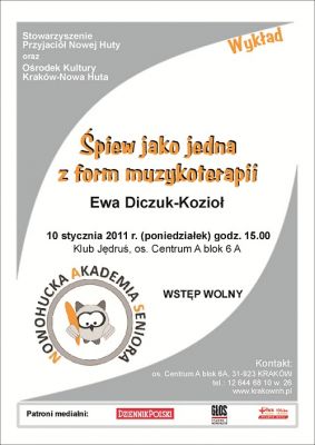 Tematyka spotkania dotyczyć będzie takich zagadnień jak: muzyka jako forma psychoterapii, œpiew chóralny jako forma muzykowania zbiorowego, a także higiena głosu.