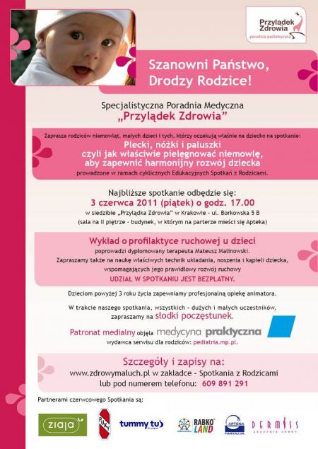 Drugie już z cyklicznej serii Spotkań Edukacyjnych dla Rodziców odbędzie się w pištek, 3 czerwca 2011, o 17.00, w siedzibie Specjalistycznej Poradni Medycznej „Przylšdek Zdrowia” przy ul. Borkowskiej 5 B w Krakowie.