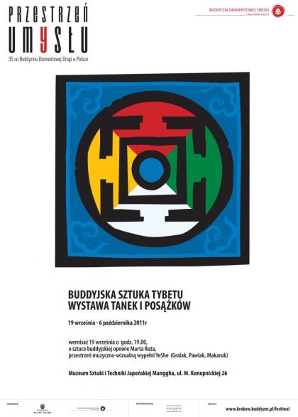19 wrzenia o godz. 19 w Muzeum Sztuki i Techniki Japońskiej Manggha w Krakowie odbędzie się wernisaż wystawy Buddyjska Sztuka Tybetu, który rozpocznie kolejnš, jubileuszowš edycję Festiwalu Kultury Buddyjskiej Przestrzeń Umysłu. Wystawa tradycyjnej sztuki buddyjskiej potrwa do 6 padziernika. Będzie można podziwiać thanki - tradycyjne malowidła przedstawiajšce formy medytacyjne oraz posšżki m.in. z Nepalu, Tybetu i Bhutanu. Wernisaż uwietni wykład na temat znaczenia tradycyjnej sztuki buddyjskiej oraz koncert formacji YESHE (Gralak, Pawlak, Makaruk).