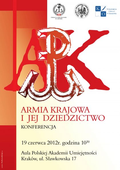 Polska Akademia Umiejętnoci, Małopolski Kurator Owiaty, Fundacja Armii Krajowej w Londynie zapraszajš 19 czerwca 2012 r. do Auli Polskiej Akademii Umiejętnoci ul. Sławkowska 17 na konferencję Armia Krajowa i jej dziedzictwo.