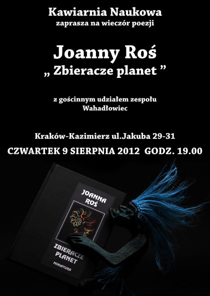 „Zbieracze planet” to nie nazwa gwiezdnej sagi, a tytuł debiutanckiego zbioru wierszy autorstwa Joanny Roœ, młodej poetki, studentki Uniwersytetu Jagiellońskiego. Tomik, który ukazał się nakładem wydawnictwa Miniatura zostanie po raz pierwszy zaprezentowany 9 sierpnia w krakowskiej Kawiarni Naukowej.