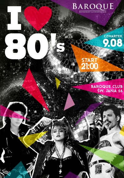 Tęsknisz za muzykš lat 80tych? Madonnš, Pet Shop Boys, Modern Talking, Bonnie Tyler, i innymi wykonawcami z tamtych lat? Jeżeli tak, to w najbliższy czwartek w Baroque Club będziesz mieć szansę usłyszeń ich największe przeboje, a to za sprawš wieczoru I love 80s.