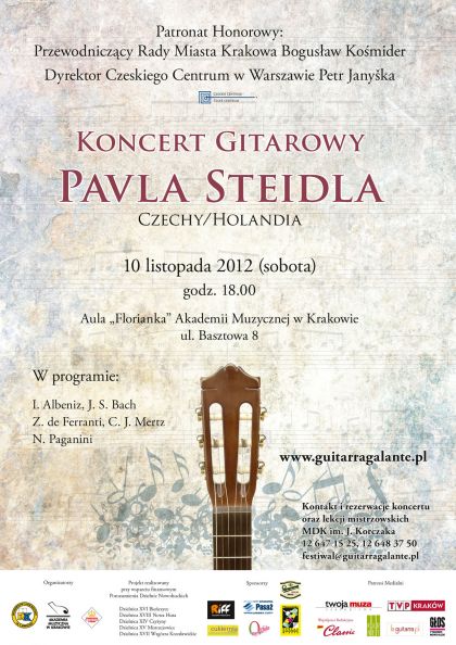 Serdecznie zapraszamy do udziału w koncercie oraz lekcjach mistrzowskich gitarzysty Pavla Steidla (Czechy/Holandia), organizowanych w ramach projektu Guitarra Galante.