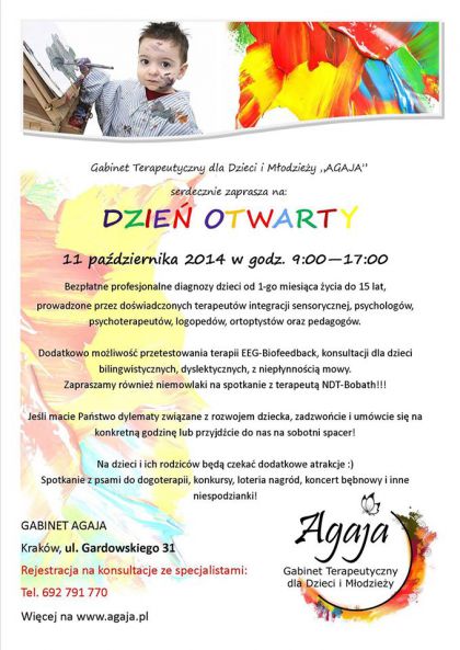 11 padziernika 2014 w godzinach 9:30 - 17:00 W Gabinecie Terapeutycznym AGAJA w Krakowie przy ul. Gardowskiego 31, bd na Pastwa czekali: